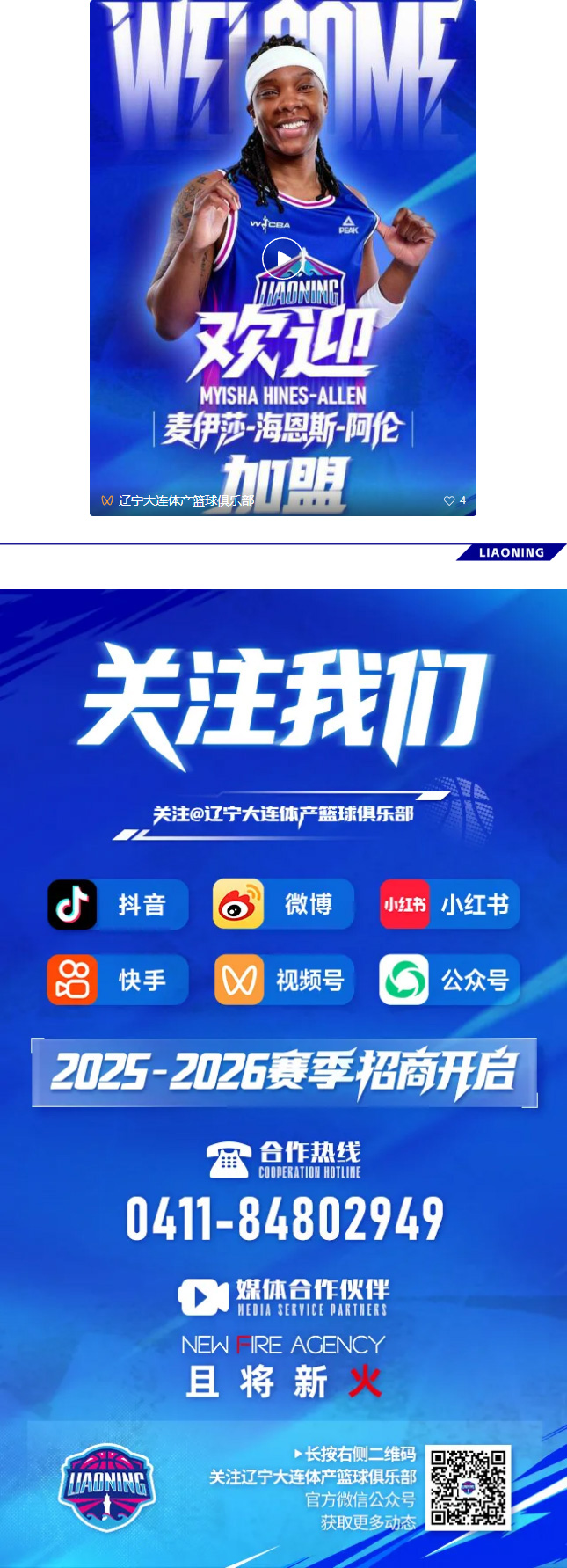 我們相信,麥伊莎 · 海恩斯 · 阿倫的加入,將提升大連文體旅女籃的鋒線與戰(zhàn)力,豐富球隊(duì)的技戰(zhàn)術(shù)打法,期待她在新賽季中助力球隊(duì)取得佳績!
