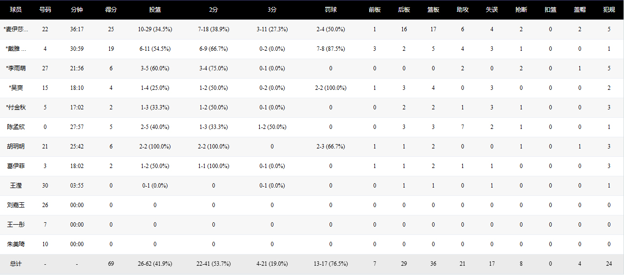 末節(jié)開始,河南隊連續(xù)沖擊籃下試圖迫近比分。大連文體旅女籃立即給予回應(yīng),阿倫外線三分命中,陳孟欣、胡玥明和李雨萌也相繼得分,打出一波流暢進攻,繼續(xù)將分差拉大。盡管對手末段連續(xù)追分,但大連文體旅女籃始終控制場上局面。全場比賽結(jié)束,大連文體旅女籃69:59戰(zhàn)勝河南豫光金鉛女籃,取得新賽季開局五連勝。